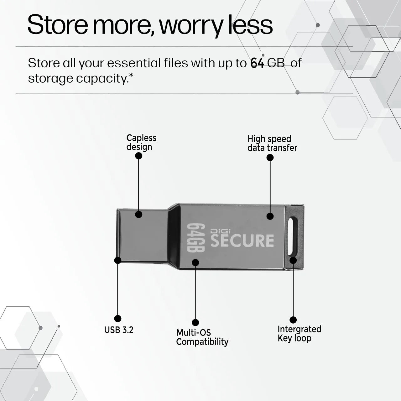 Digi Secure USB 3.2 Flash Drive 64GB – Up to 200MBps High-Speed Pen Drive