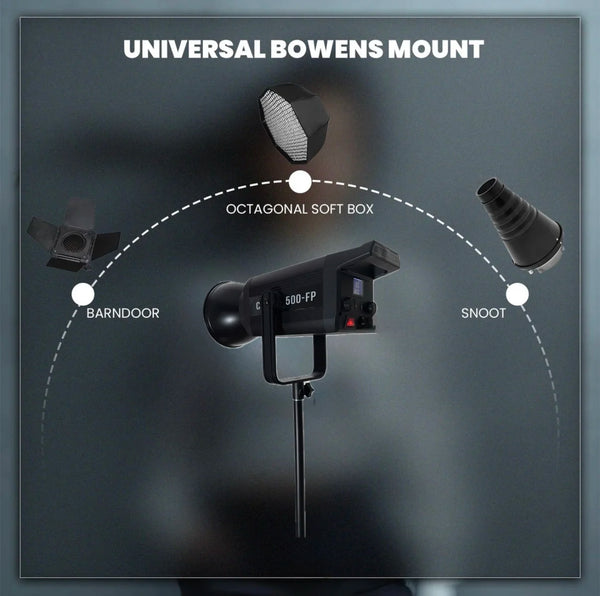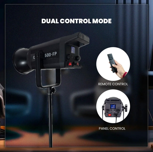 The 500FP offers exceptional color accuracy with a CRI of 95+, ensuring natural and vibrant color rendering for photography, videography, and studio applications. Control brightness, color temperature, and stunning 9 creative FX modes easily via the included remote control for dynamic lighting effects