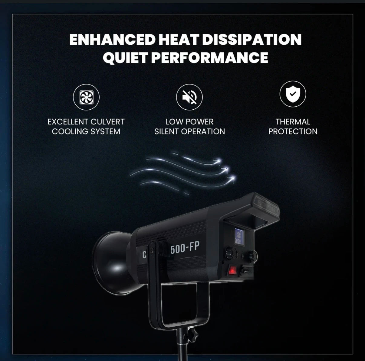 Elevate your lighting setup with the Foton Power 500FP COB Light, a powerhouse 500-watt LED light designed for professionals who demand versatility and superior performance. Boasting a wide color temperature range from 2800K to 6800K, this light delivers perfect warmth or cool tones to suit any creative vision.