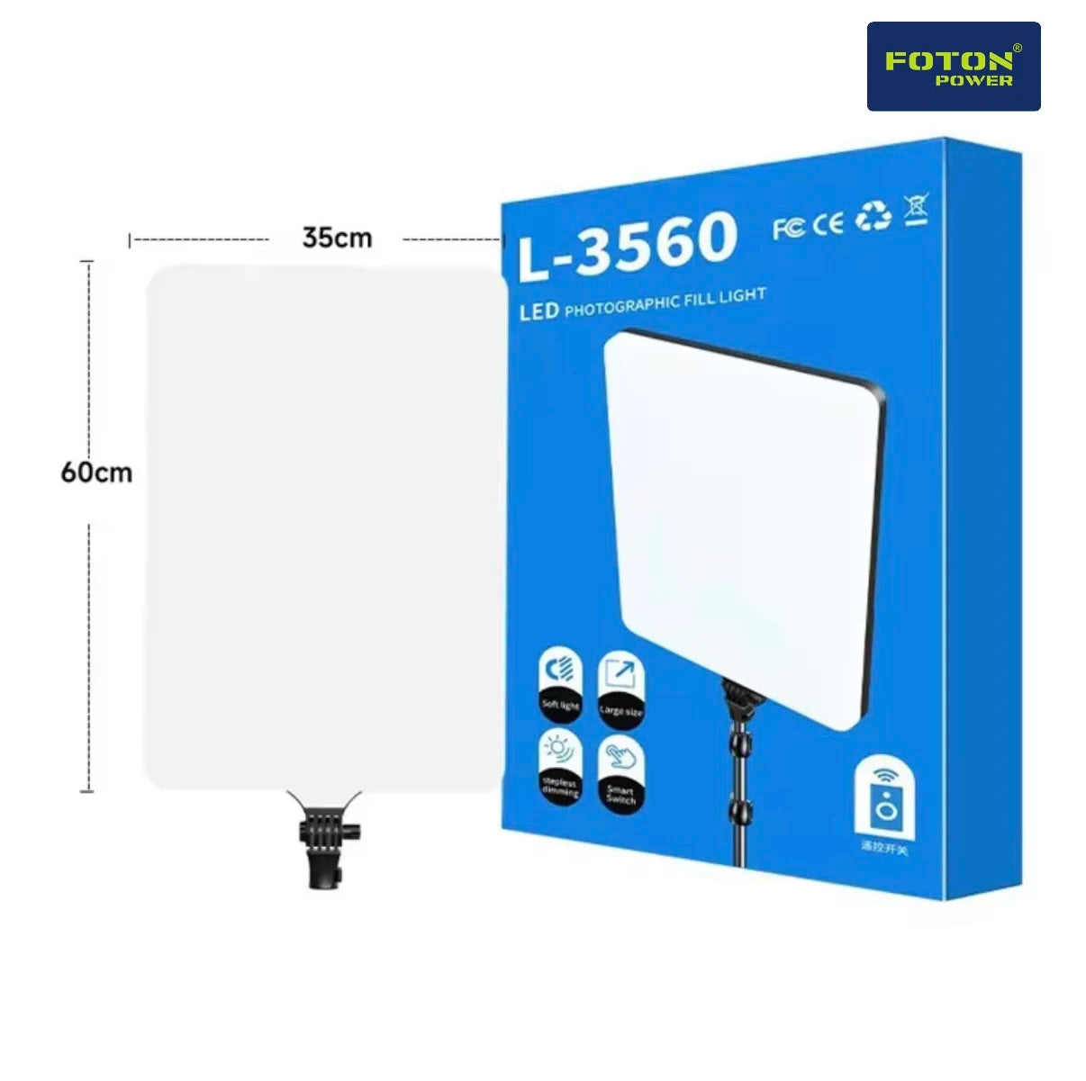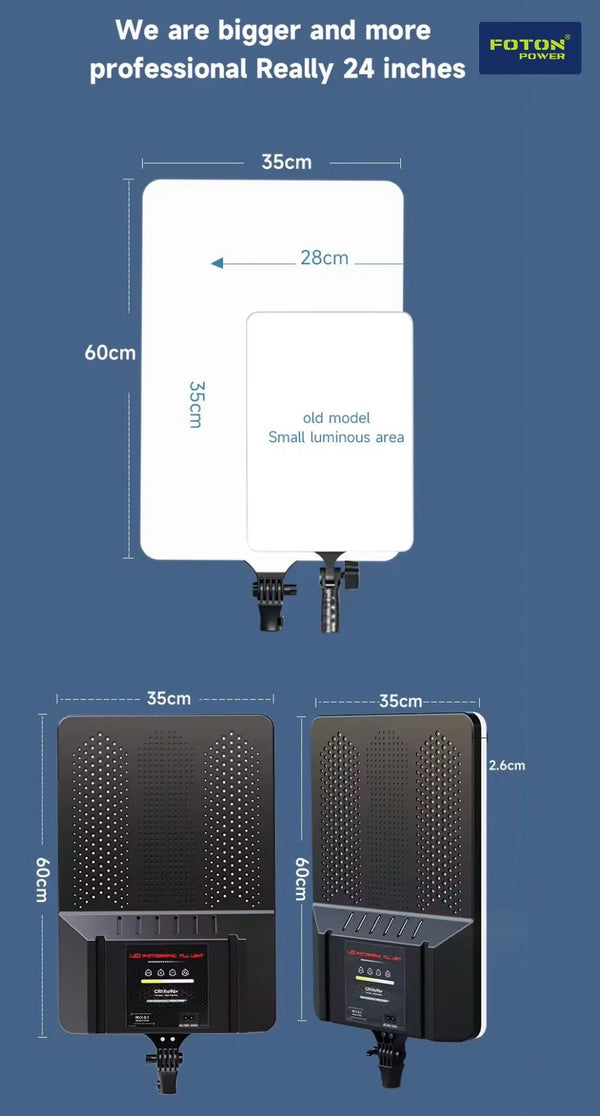 The Foton Power L3560 is a professional-grade 24-inch fill light designed for studio, photography, videography, and live streaming applications. Equipped with an impressive 1200 high-brightness LED beads, this panel delivers soft, even lighting while minimizing harsh shadows and glare.